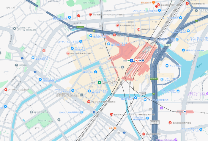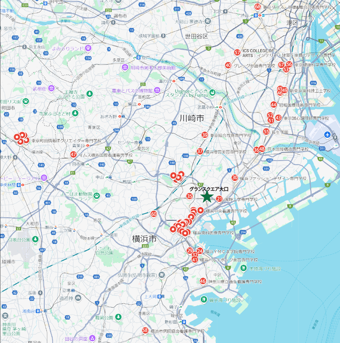 こんなに多くの専門学校に40分以内で通える横浜大口
