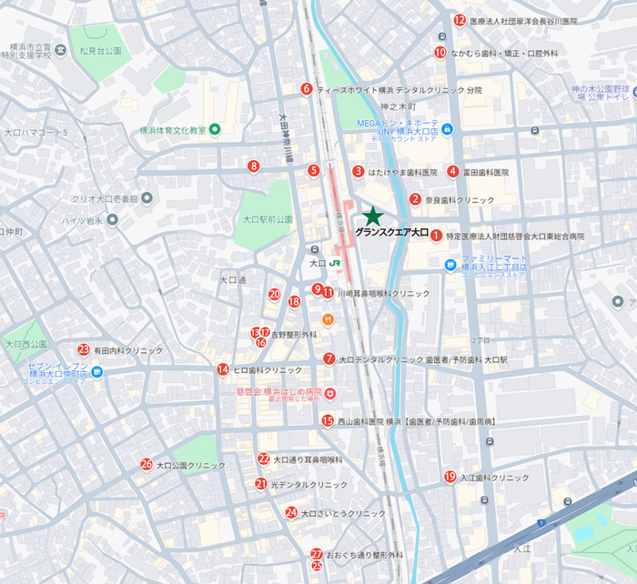 | 26 | 大口公園クリニック | 9分 | 内科・消化器内科・循環器内科・アレルギー科 |