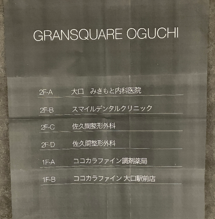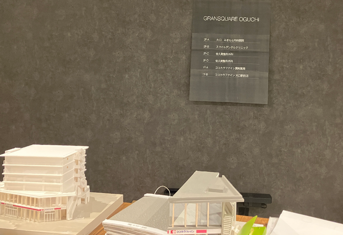グランスクエアの英語ロゴ GRANSQUARE OGUCHI 1F ココカラファイン 2階 整形外科など医療系 イメージしたフロア案内看板 先週の打ち合わせ風景です