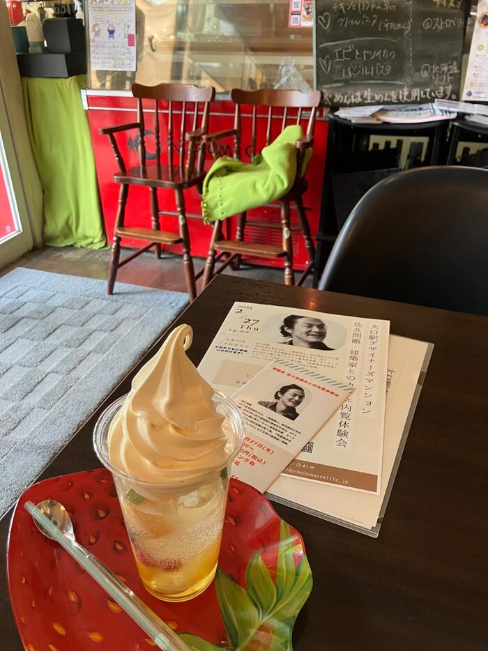 トロピカルを食べながら、NAGOMIカフェオーナーと2/27の打ち合わせできました。パンフレット置かせて頂きありがとございます♪