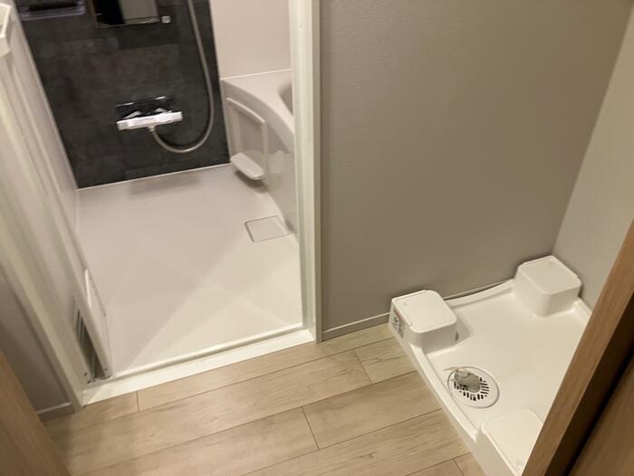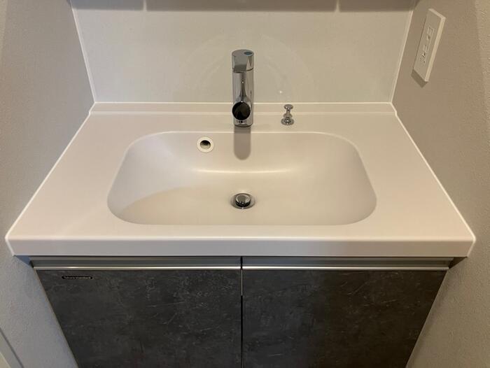 部屋の見どころとしては、独立洗面台とデザイン性です。広い洗面台ではありませんが、ユニットバスとは別の洗面台があることにより、ドライヤーやメイクもしやすくなります。朝シャンも可能です。