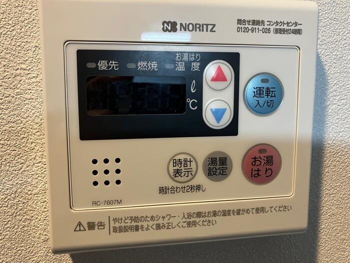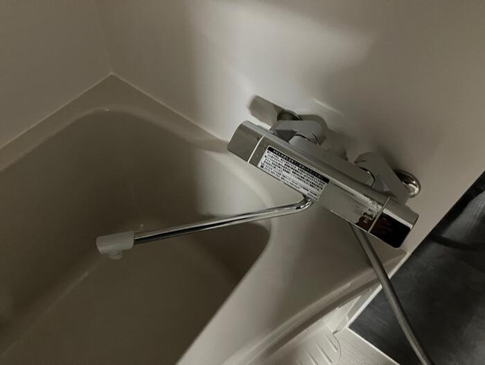 浴室には、洗面とは違う丸型のシャワーヘッド。浴室でタオルやバスマットなども干せるように、移動可能なスティック棒も標準でついています。3-4階には、追いだき機能はありませんが、自動お湯はり機能がついているので、帰宅時にお湯はりボタンを押すだけで、自分好みの温度と湯量の快適なお風呂に入れます。