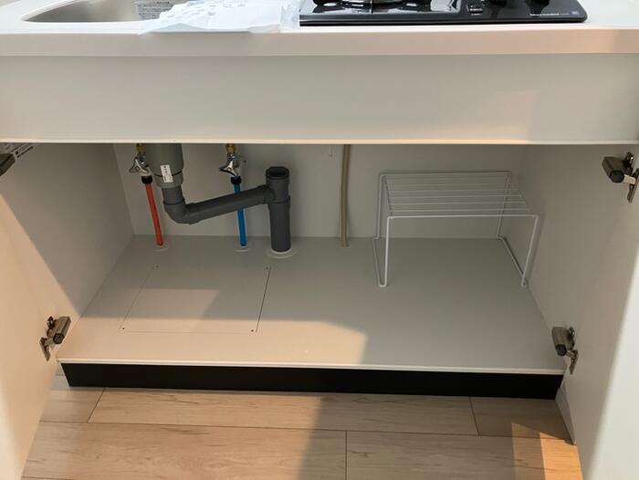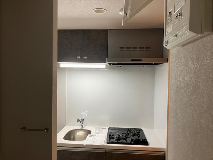キッチンの上と下に収納スペースがあるので、調味料、食器棚を買わないでも、冷蔵庫を買えばすぐに料理が楽しめる環境が整っています。