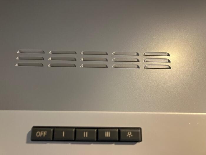 上部にモダンな換気扇がついているので、煙が出ても匂いが充満せずにすみます。換気を気にする人は24時間付けっぱなしでもいいかもしれません。
