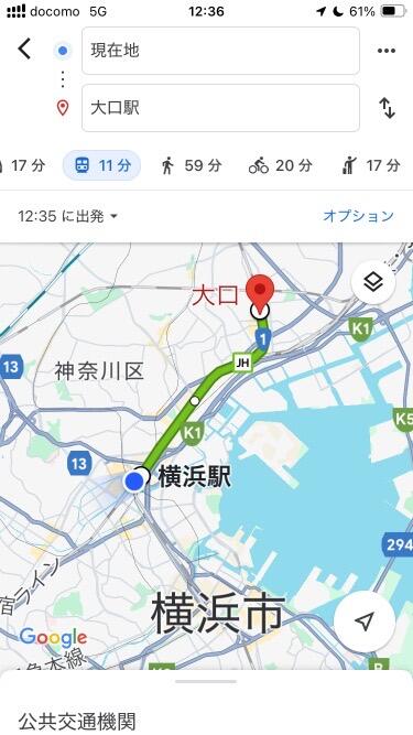 横浜駅から東神奈川駅の次が大口駅なので、横浜駅から6分位でした。