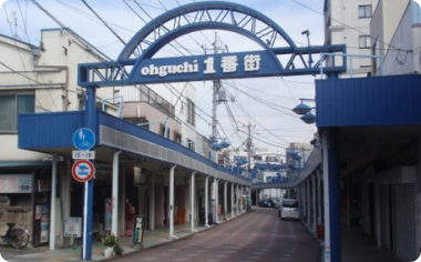 高峰涼子(山口紗弥加)の娘が歩いていたアーケード商店街のシーンで大口通商店街が使用されました。