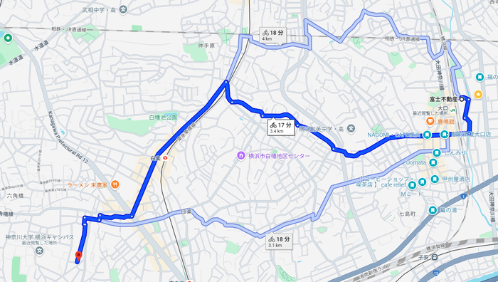 大口駅から徒歩30秒の超駅チカ「グランスクエア大口」は、神奈川大学まで自転車で約3km、17分という距離にあります。