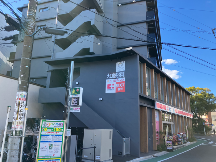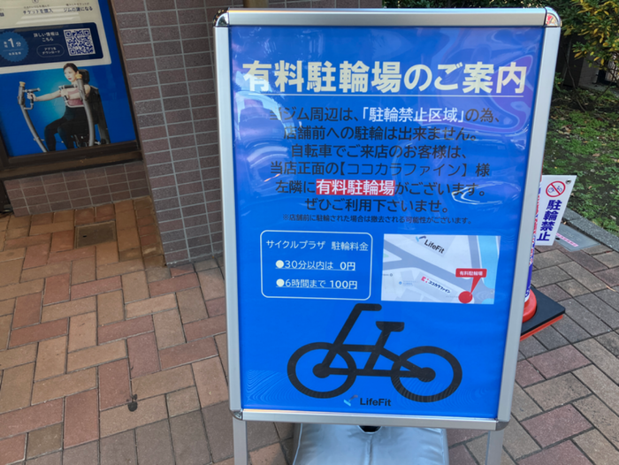 自転車は大口グランスクエアの有料駐輪場の案内がありあります